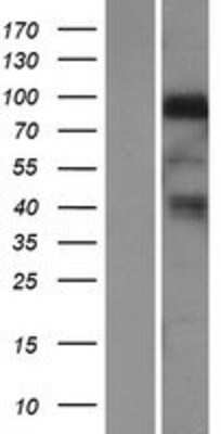 This product is intended for use as a positive control in Western Blot. Overexpression of the target protein was confirmed using an antibody to DDK (FLAG) epitope tag ( NBP1-71705) present on the protein construct. Each vial of cell lysate contains 100ug of total protein which should be sufficient for 20-50 reactions. Depending on over-expression level, antibody affinity and detection system, some lysates can go as low as 0.1 ug per load. We recommend starting with 5ug of cell lysate. Add an equal amount of cell lysate and 2X SDS Sample buffer and boil the SDS samples for 10 minutes before loading. |