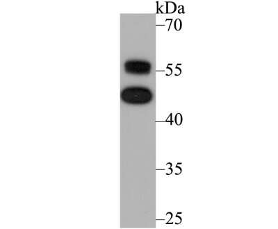 47 kDa. Disclaimer note: The observed molecular weight of the protein may vary from the listed predicted molecular weight due to post translational modifications, post translation cleavages, relative charges, and other experimental factors. |