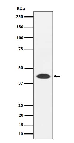 | Theoretical MW | 42 kDa. Disclaimer note: The observed molecular weight of the protein may vary from the listed predicted molecular weight due to post translational modifications, post translation cleavages, relative charges, and other experimental factors. |