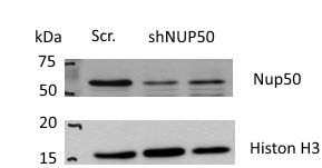 | Application Notes | Epitope retrieval with citrate buffer pH6.0 is recommended for FFPE tissue sections. NUP50 antibody validated for WB from a verified customer review. |
