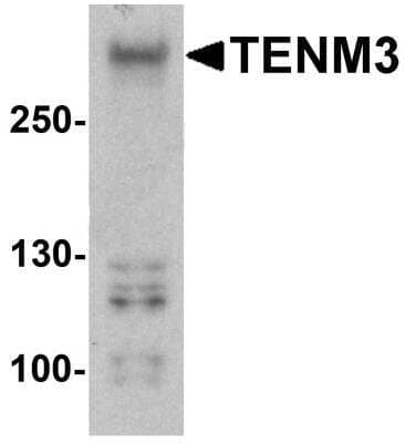 | Specificity | ODZ3 antibody is human, mouse and rat reactive. ODZ3 antibody is predicted to not cross-react with other members of the TENM family. |