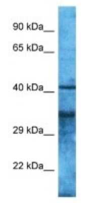 | Theoretical MW | 35 kDa. Disclaimer note: The observed molecular weight of the protein may vary from the listed predicted molecular weight due to post translational modifications, post translation cleavages, relative charges, and other experimental factors. |