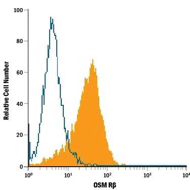 Oncostatin M (OSM) is a member of the IL-6 family of cytokines that share the gp130 as a common signal transducing receptor subunit. Human OSM signals through two types of human OSM receptor complexes: the type I complex comprising the leukemia inhibitory factor receptor beta (LIF R beta ) and gp130, the type II complex made up of OSM Receptor beta (OSM R beta ) and gp130. In contrast, mouse OSM signals only through the mouse OSM R beta and gp130 complex. Mouse OSM R beta cDNA encodes a 971 amino acid (aa) type I transmembrane protein which contains a 23 aa signal peptide, an extracellular domain of 714 aa, a transmembrane domain of 20 aa and a 214 aa cytoplasmic domain. Mouse OSM R beta alone binds mOSM with low-affinity but forms a high-affinity binding complex in the presence of gp130. Mouse OSM R beta is 55% identical at the amino acid sequence level to human OSM R beta .