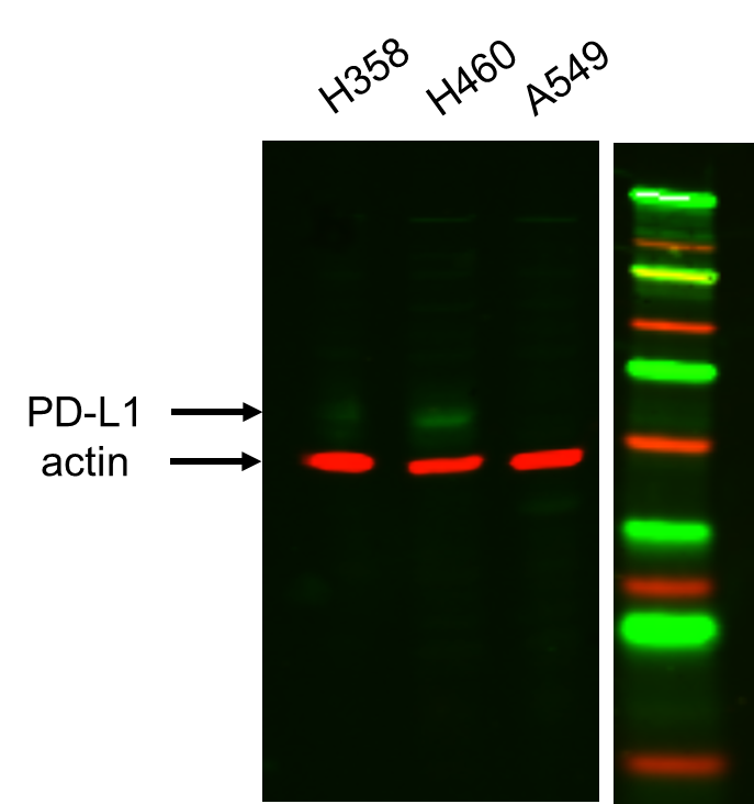 | Specificity | Detects human PD-L1/B7-H1 in direct ELISAs and Western blots. In direct ELISAs, less than 15% cross-reactivity with recombinant mouse PD-L1/B7-H1 is observed and less than 1% cross‑reactivity with recombinant human PD-L2 is observed. |