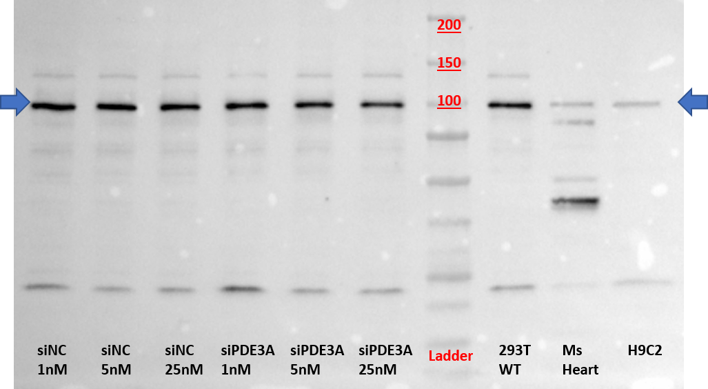 | Immunogen | Recombinant protein encompassing a sequence within the center region of human PDE3A. The exact sequence is proprietary. |