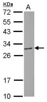 28 kDa. Disclaimer note: The observed molecular weight of the protein may vary from the listed predicted molecular weight due to post translational modifications, post translation cleavages, relative charges, and other experimental factors. |