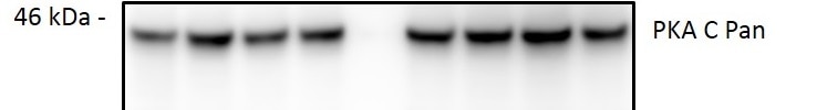 | Specificity | Detects recombinant human PKA C alpha , C beta , and C gamma , and endogenous human PKA C isoforms in Western blots. |