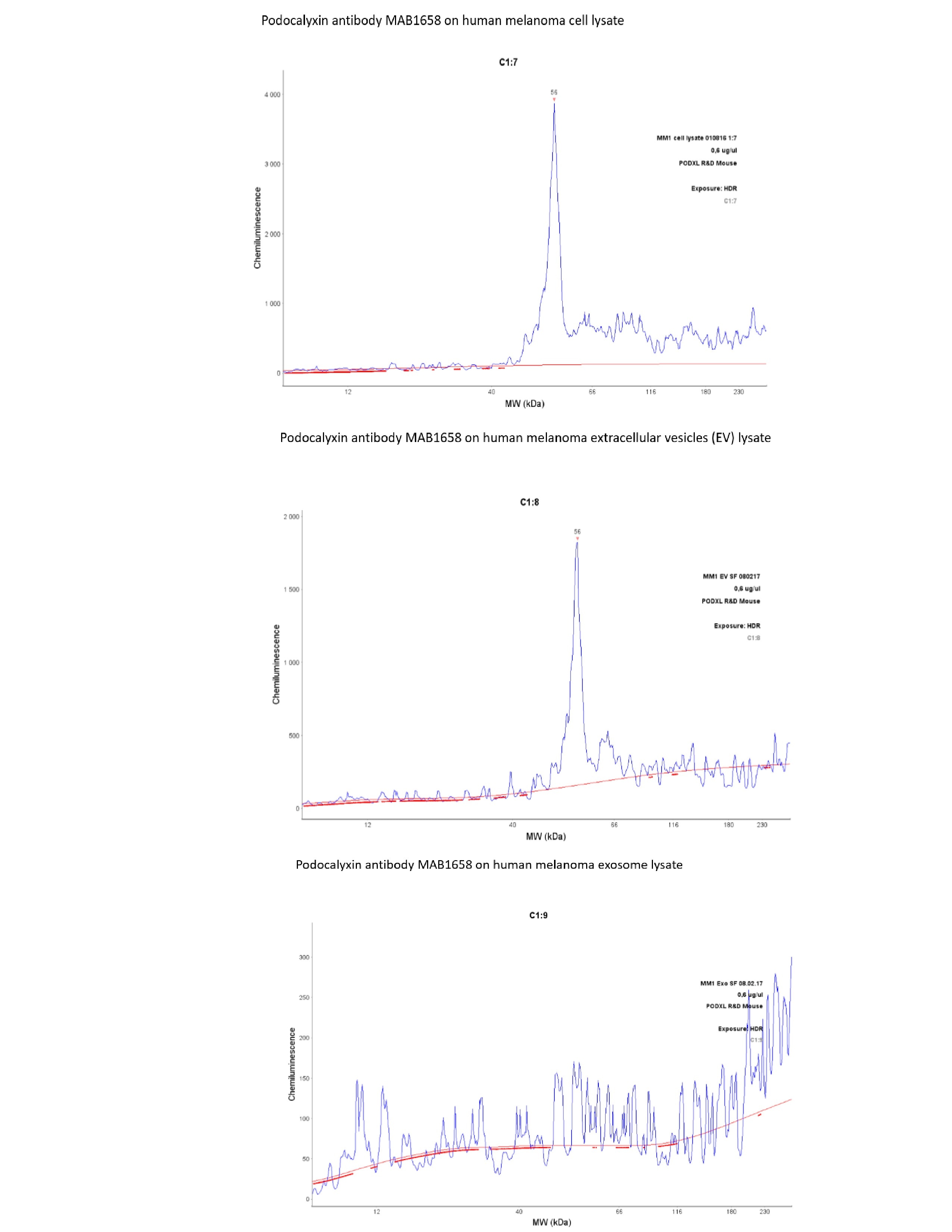 | Immunogen | Mouse myeloma cell line NS0-derived recombinant human Podocalyxin Ser23-Arg427 Accession # AAB61574 |