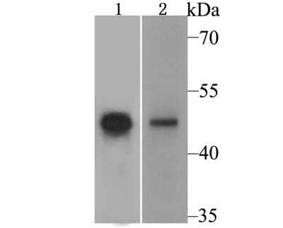| Theoretical MW | 54 kDa. Disclaimer note: The observed molecular weight of the protein may vary from the listed predicted molecular weight due to post translational modifications, post translation cleavages, relative charges, and other experimental factors. |