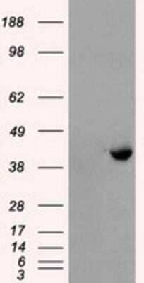 | Theoretical MW | 42.3 kDa. Disclaimer note: The observed molecular weight of the protein may vary from the listed predicted molecular weight due to post translational modifications, post translation cleavages, relative charges, and other experimental factors. |
