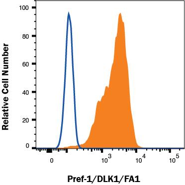 Detects human Pref‑1/DLK1/FA1 in direct ELISAs and Western blots. Shows approximately 50% cross-reactivity with recombinant mouse Pref‑1/DLK1/FA1.