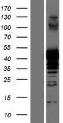 | Application Notes | This product is intended for use as a positive control in Western Blot. Overexpression of the target protein was confirmed using an antibody to DDK (FLAG) epitope tag (NBP1-71705) present on the protein construct. Each vial of cell lysate contains 100ug of total protein which should be sufficient for 20-50 reactions. Depending on over-expression level, antibody affinity and detection system, some lysates can go as low as 0.1 ug per load. We recommend starting with 5ug of cell lysate. Add an equal amount of cell lysate and 2X SDS Sample buffer and boil the SDS samples for 10 minutes before loading. |