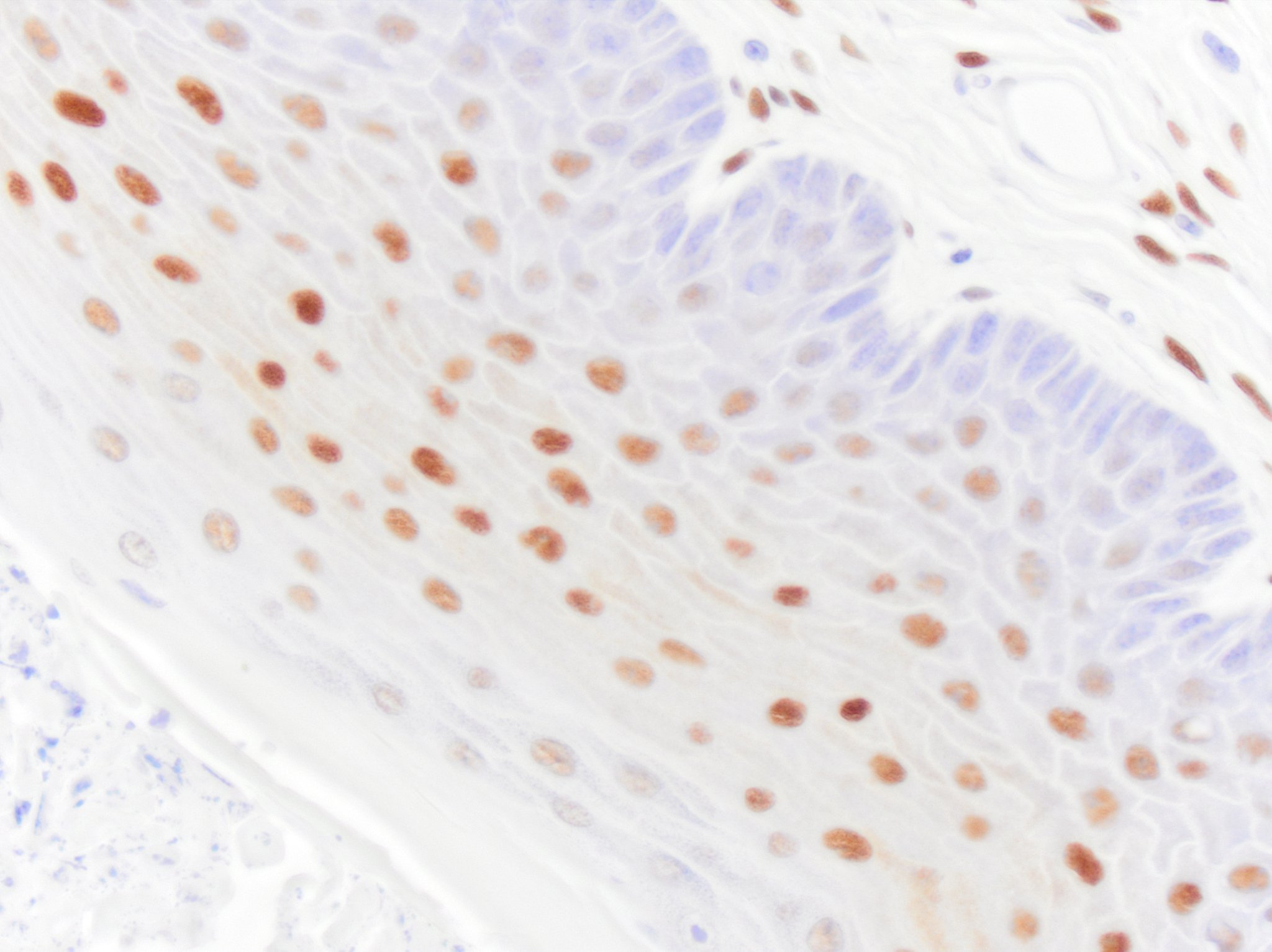 ***Bio-Techne Response: This review was submitted through the legacy Novus Innovators Program, reflecting a new species or application tested on a primary antibody.*** No antigen retrieval was needed for some sections. Brief 5m heat induced epitope retrieval increased the intensity of the label but also produced cytoplasmic labeling which may be nonspecific. No signal was observed in tissue sections that underwent proteinase induced epitope retrieval with 5m proteinase K.