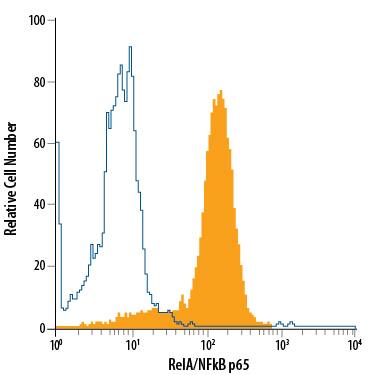 RelA p65 (v-rel reticuloendotheliosis viral oncogene homolog A) is a 65 kDa member of the NF kappa B family of nuclear transcription factors. Dimers of p65 with the p50 subunit are the most common form of the NF kappa B transcription factor, but dimers with it or other family members can also occur. Upon activation, RelA p65 forms an heterotetramer and moves into the nucleus where it binds to specific DNA sequences. An alternatively spliced isoform that lacks amino acids (aa) 222‑231 (p65 delta ) does not bind DNA. Over the sequence used as an immunogen, human RelA p65 shares 96% and 98% aa identity with mouse and rat RelA p65, respectively. This portion includes one of eight potential ser/thr phosphorylation sites, two acetylation sites, and most of the Rel homology domain that interacts with I kappa B inhibitors.