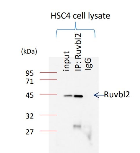 | Immunogen | The immunogen for this product maps to a region between residue 1 and 50 of human RuvB-like 2 using the numbering given in entry NP_006657.1 (GeneID 10856). |
