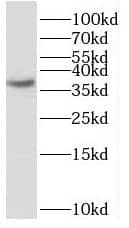 37 kDa. Disclaimer note: The observed molecular weight of the protein may vary from the listed predicted molecular weight due to post translational modifications, post translation cleavages, relative charges, and other experimental factors. |