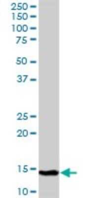 Western Blot: IL25 Antibody [H00056005-B01P] - Analysis of C19orf10 expression in transfected 293T cell line by C19orf10 polyclonal antibody. Lane 1: C19orf10 transfected lysate(19.03 KDa). Lane 2: Non-transfected ...read more