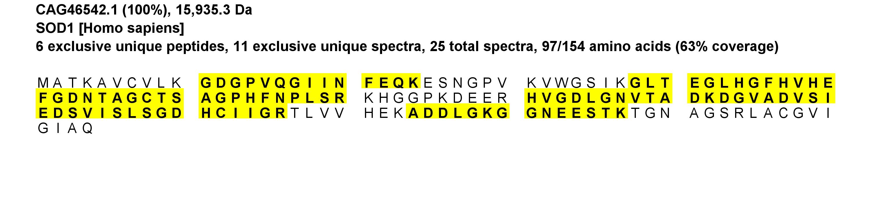 This antibody captured 6 peptides (out of 11 possible), providing a 63% coverage of the protein, however, Novus cannot provide the concentration of this antibody, which is a problem for us.