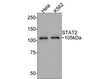 | Immunogen | Synthetic peptide within human STAT2 aa 1-49/851. (SwissProt: P52630 Human; SwissProt: Q9WVL2 Mouse; Unigene: 24237 Rat) |
