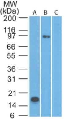 | Application Notes | Staining of formalin-fixed tissues is enhanced by boiling tissue sections in 10 mM sodium citrate buffer, pH 6.0 for 10-20 min followed by cooling at RT for 20 min. |