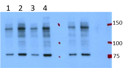 | Theoretical MW | 97 kDa. Disclaimer note: The observed molecular weight of the protein may vary from the listed predicted molecular weight due to post translational modifications, post translation cleavages, relative charges, and other experimental factors. |