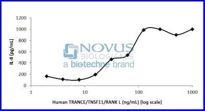 An un-tagged bioactive recombinant protein corresponding to Human TRANCE/TNFSF11/RANK L Source: E. coli Amino Acid Sequence: EKAMVDGSWL DLAKRSKLEA QPFAHLTINA TDIPSGSHKV SLSSWYHDRG WAKISNMTFS NGKLIVNQDG FYYLYANICF RHHETSGDLA TEYLQLMVYV TKTSIKIPSS HTLMKGGSTK YWSGNSEFHF YSINVGGFFK LRSGEEISIE VSNPSLLDPD QDATYFGAFK VRDID