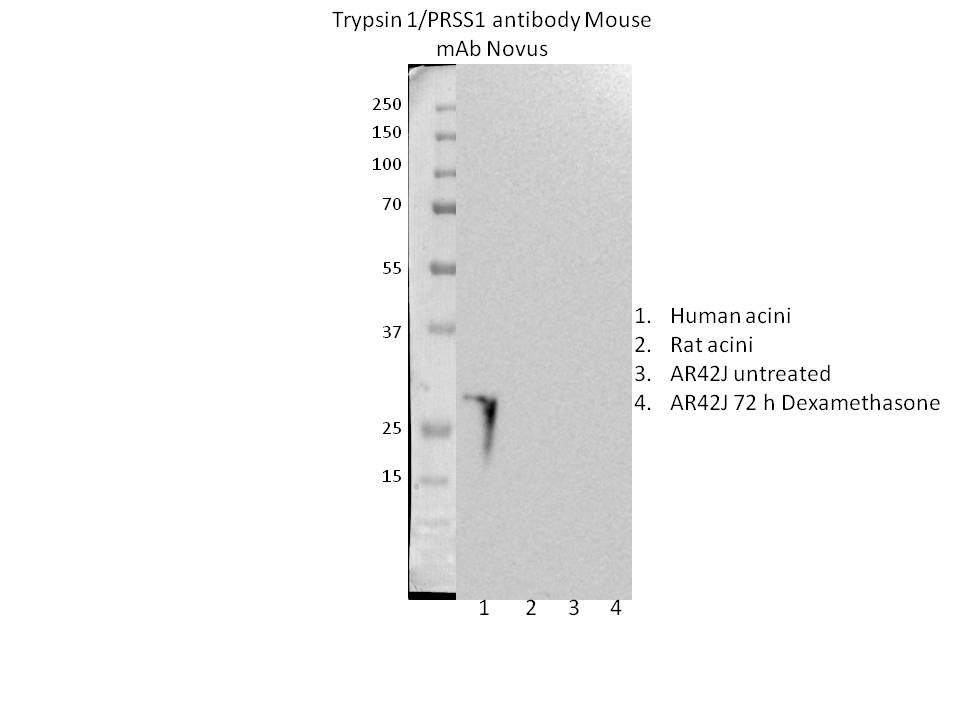 | Immunogen | Mouse myeloma cell line NS0-derived recombinant human Trypsin 1/PRSS1 Ala16-Ser247 Accession # P07477 |