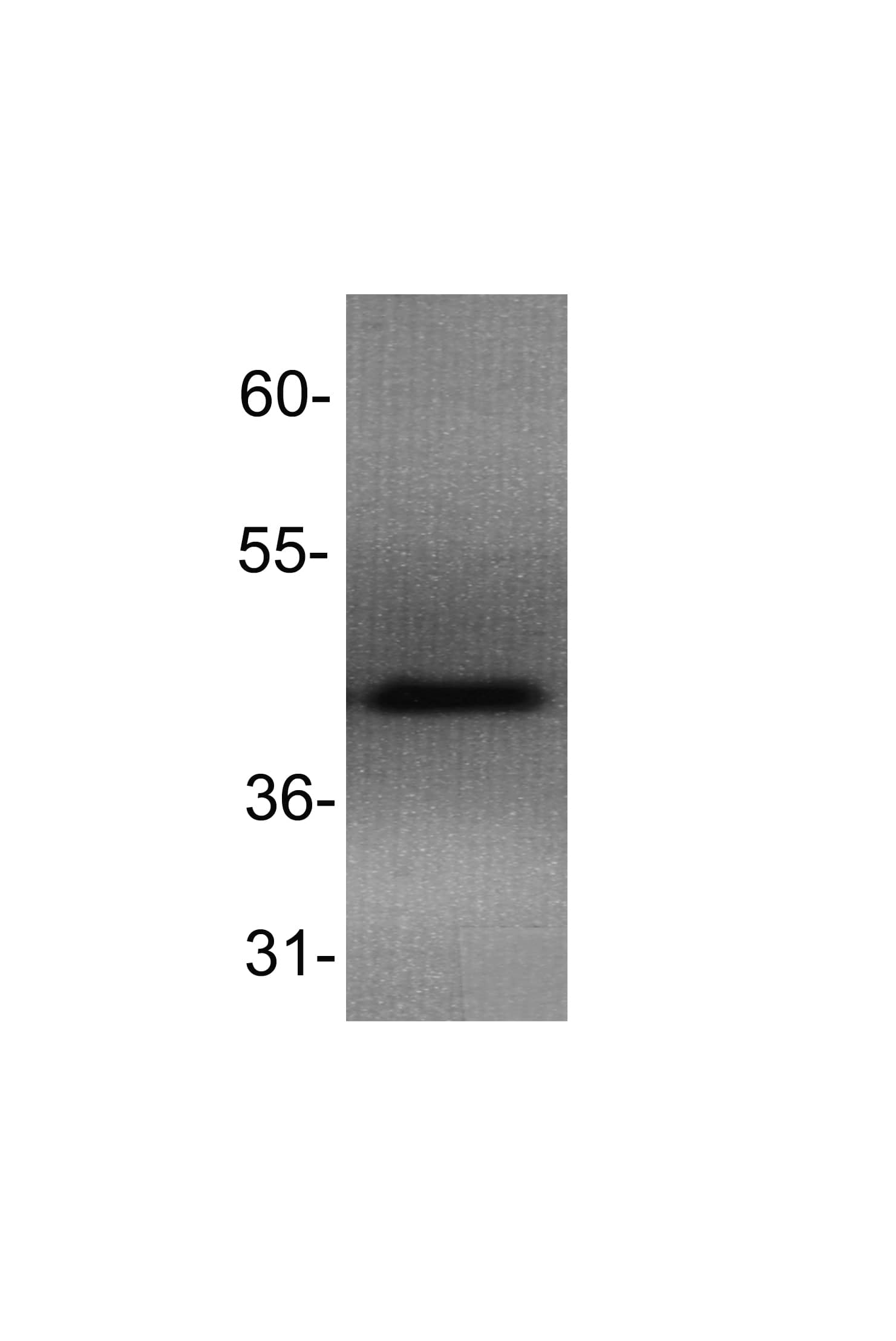 39 kDa. Disclaimer note: The observed molecular weight of the protein may vary from the listed predicted molecular weight due to post translational modifications, post translation cleavages, relative charges, and other experimental factors.