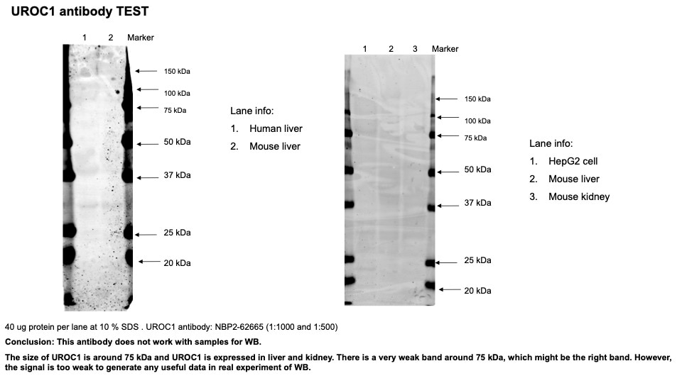 | Description | Novus Biologicals Rabbit UROC1 Antibody - BSA Free (NBP2-62665) is a polyclonal antibody validated for use in IHC. All Novus Biologicals antibodies are covered by our 100% guarantee. |