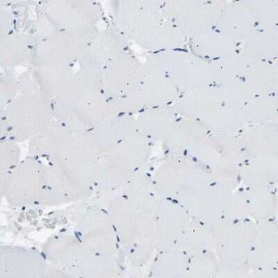 Immunohistochemistry-Paraffin: VRK1 Antibody [NBP1-89548] - Staining of human skeletal muscle shows no positivity in myocytes as expected.