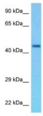 45 kDa. Disclaimer note: The observed molecular weight of the protein may vary from the listed predicted molecular weight due to post translational modifications, post translation cleavages, relative charges, and other experimental factors. |
