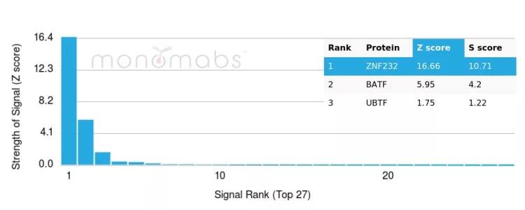 | Immunogen | Recombinant fragment (around aa29-109) of human ZNF232 protein |