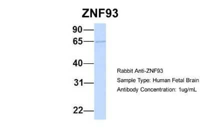 | Immunogen | Synthetic peptide directed towards the N terminal of human ZNF93The immunogen for this antibody is ZNF93. Peptide sequence FNQFSTLITHKKIHTGEKPYICEECGKAFKYSSALNTHKRIHTGEKPYKC. The peptide sequence for this immunogen was taken from within the described region. |
