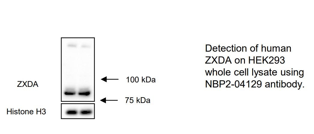 | Description | Novus Biologicals Rabbit ZXDA Antibody - BSA Free (NBP2-04129) is a polyclonal antibody validated for use in WB. All Novus Biologicals antibodies are covered by our 100% guarantee. |